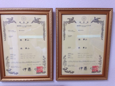 院長の林 華山が取得した、お灸に関する「棒灸保持具」の特許証です。